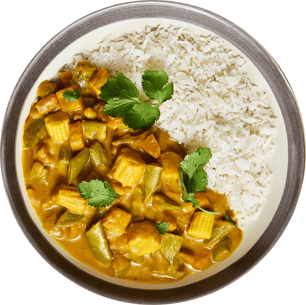 Foodhak's mild curry is inspired by delicious flavours from the Malabar Coast and rooted in Ayurvedic principles. This delicious ready-made dish features the comforting textures of butternut squash, the healthy qualities of the superfood kale, and delicate Indian-inspired flavours such as curry leaves and turmeric.