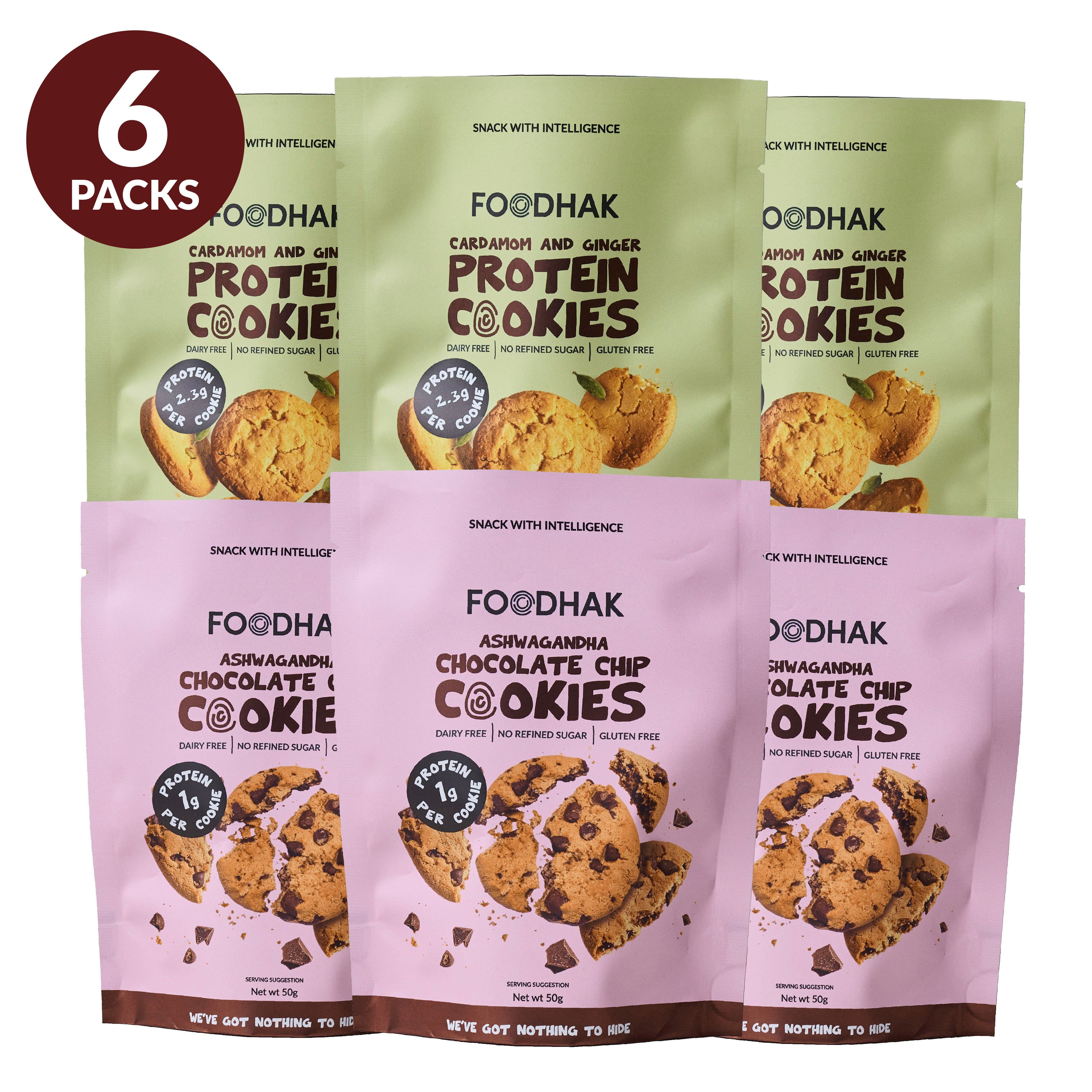Give into your cookie cravings with two clean, natural and DELICIOUS cookies! Try our signature Ashwagandha Chocolate Chip Cookies and our protein-packed Cardamom and Ginger Protein Snaps - now in mini sizes. Just grab a handy snacking bag and you're set for the day ahead. All free from gluten, dairy, preservatives but completely irresistible.